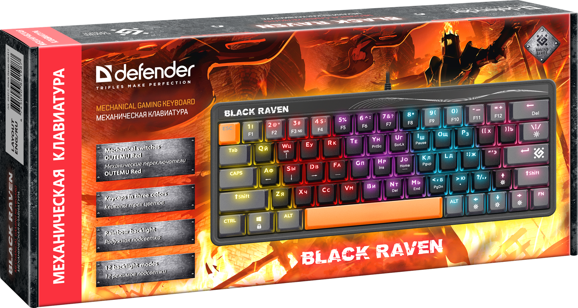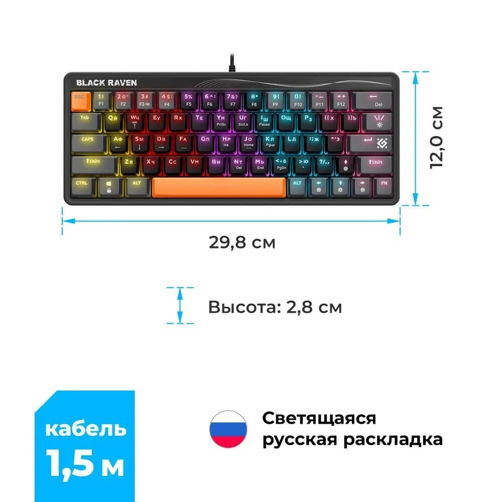 Механическая клавиатура Defender Black Raven GK-417 RU,3цвета, радужная,63кн