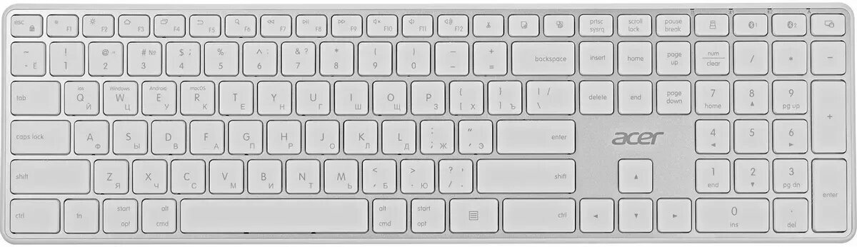 Бепроводная клавиатура Acer OKR301 белый/серебристый USB/Bluetooth slim Multimedia