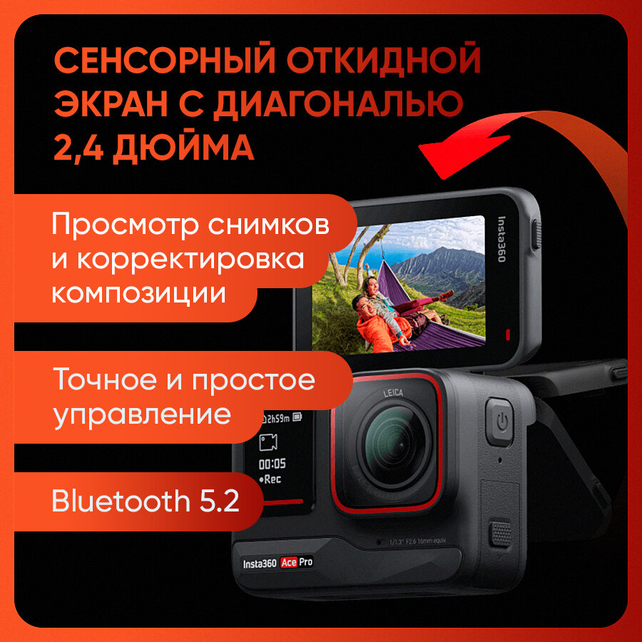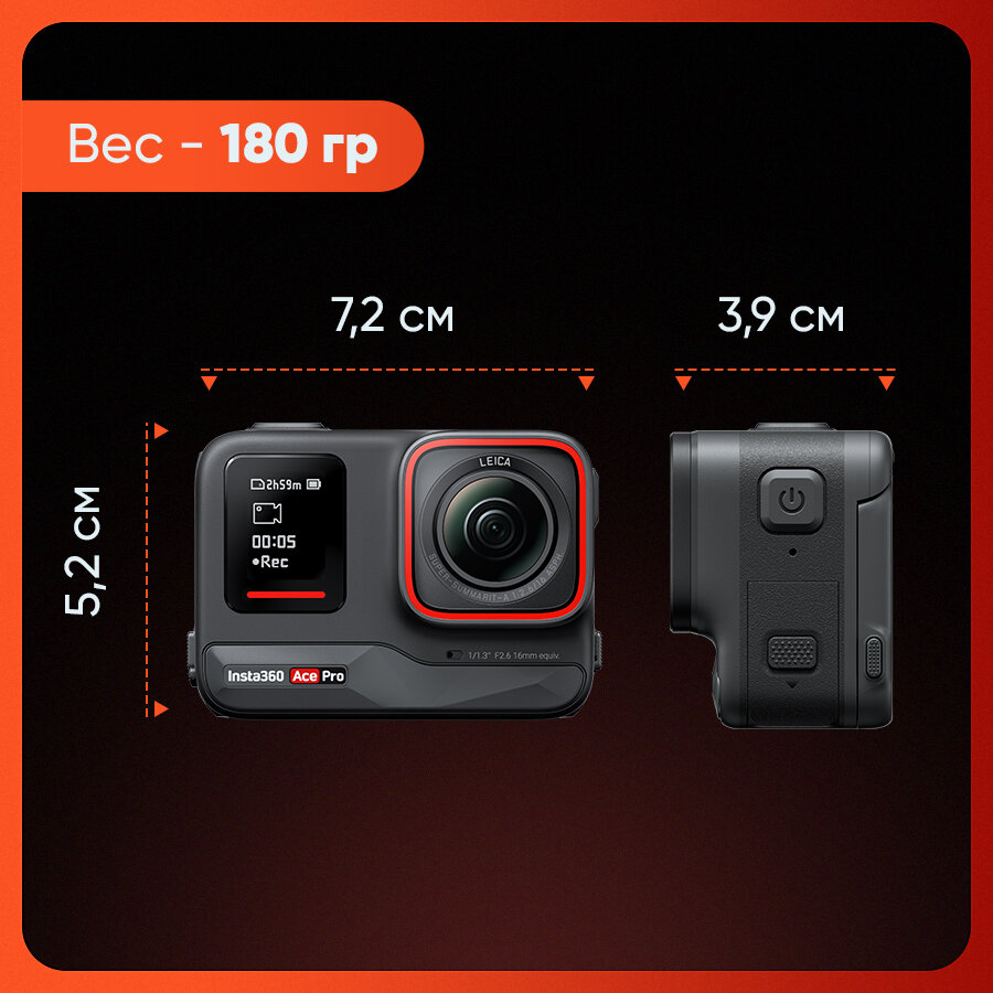 Экшн-камера Insta360 Ace Pro Standalone Совместно с Leica, 8K24 4K120 сенсор 1/1.3" 48MP