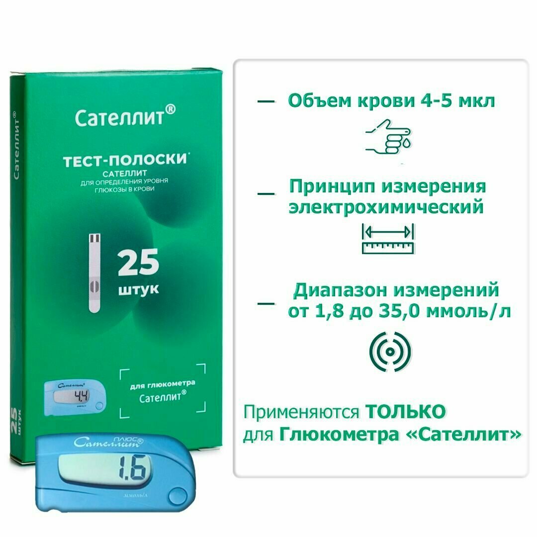Ниже Вы можете прочитать отзывы на Тест-полоски Сателлит 25 ., ознакомится с подробными характеристиками, посмотреть интересные обзоры и фотографии на Тест-полоски Сателлит 25 ..
