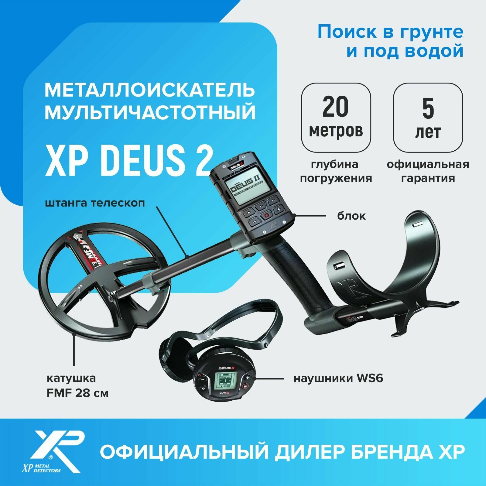 Купить Металлоискатель XP Deus 2 (катушка FMF 28 см, блок, наушники WS6)
