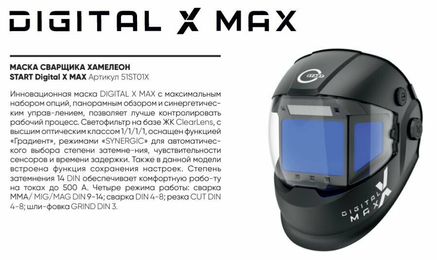 Маска сварщика хамелеон START DIGITAL X MAX интересное: