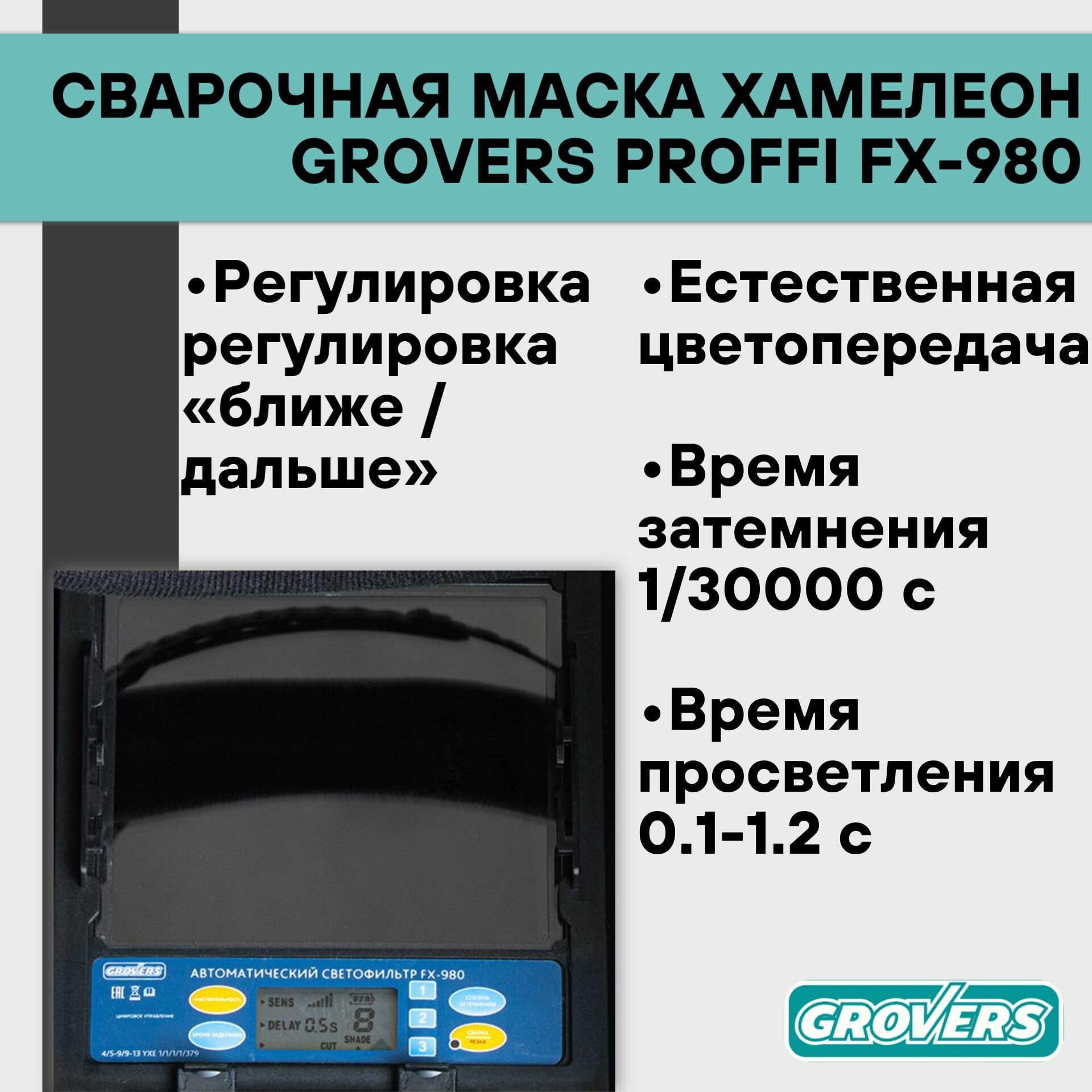 Маска сварщика хамелеон GROVERS PROFFI FX-980 интересное: