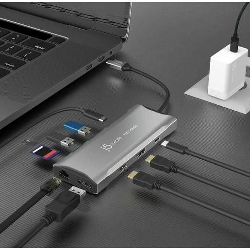 Купить Мини-док станция j5create USB-C Multi-Monitor Mini Dock, совместима с устройствами USB4. Цвет: серый.