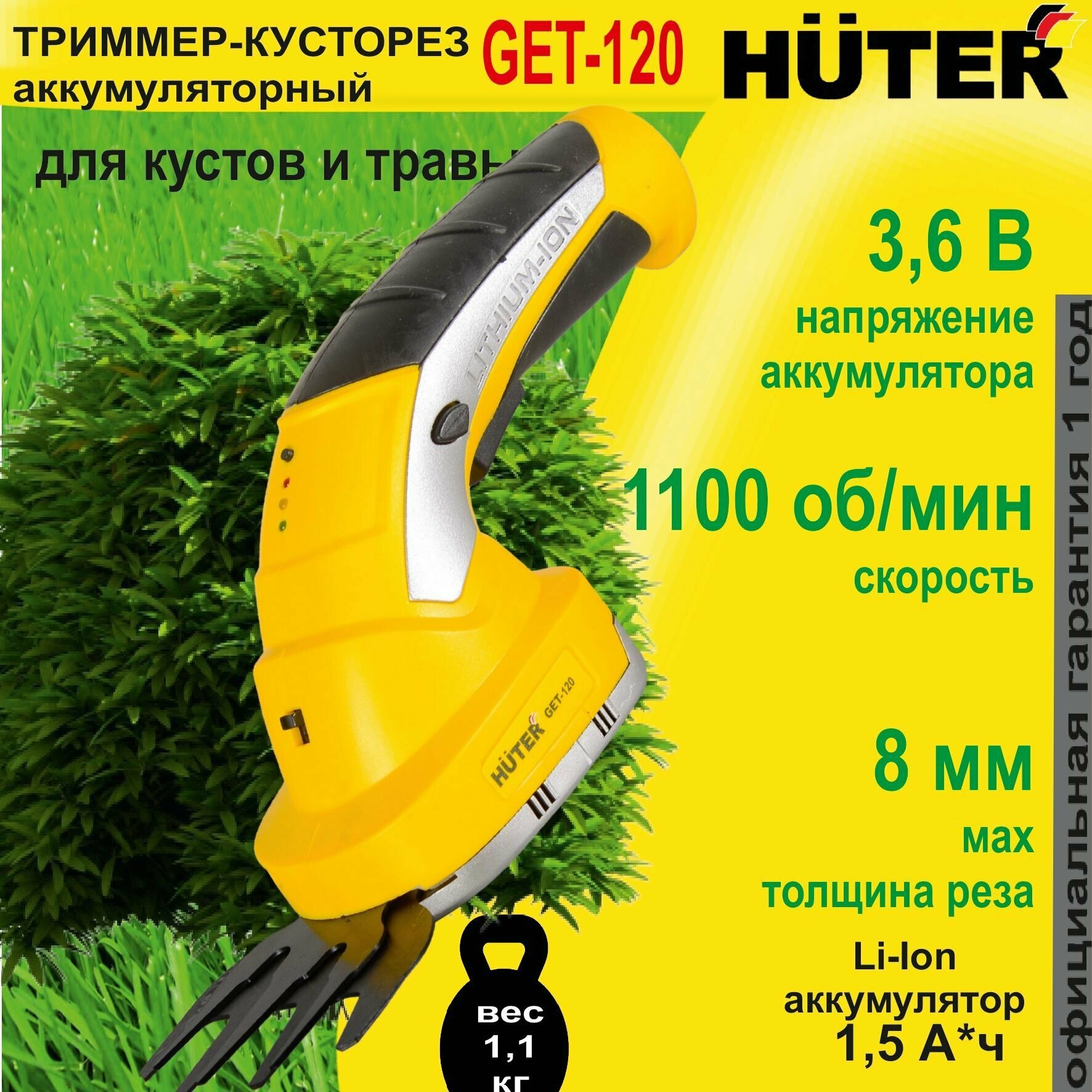 Купить Кусторез/ножницы для травы Huter GET-120, 1.5Ач [70/1/41]