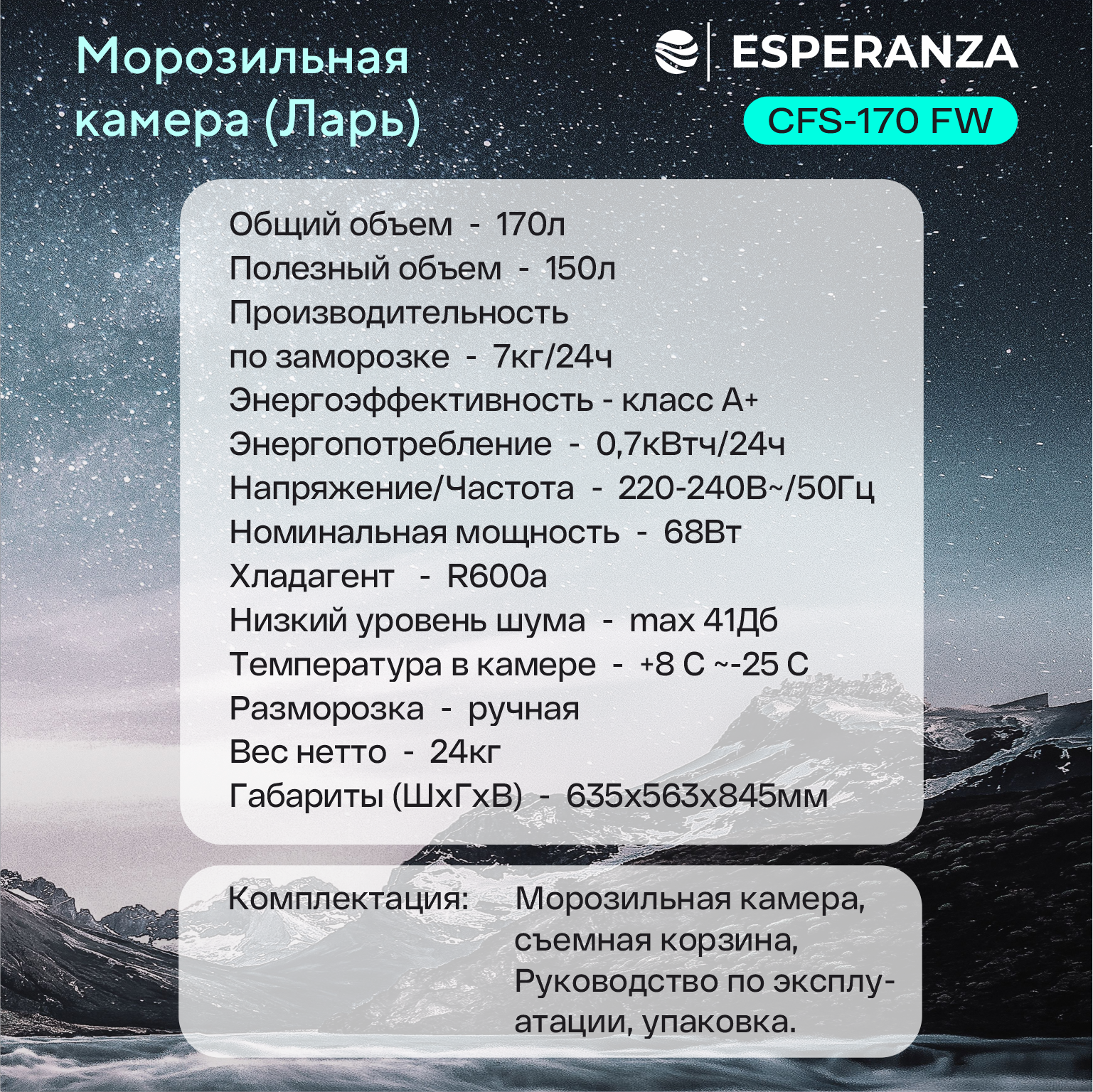 Морозильный ларь ESPERANZA CFS 170 FW интересное: