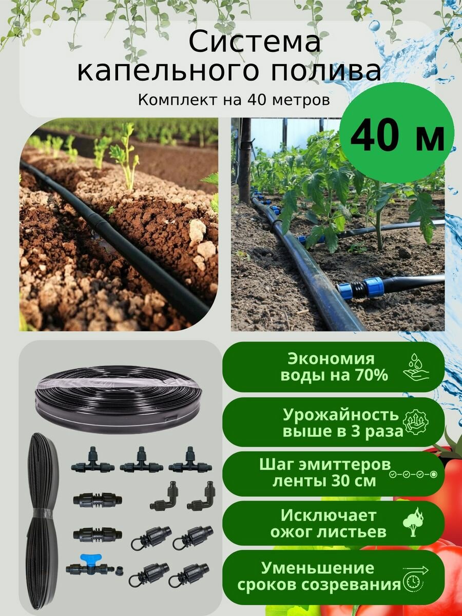 Купить Капельный полив для теплиц и огорода на 40 метров, шаг 30 см