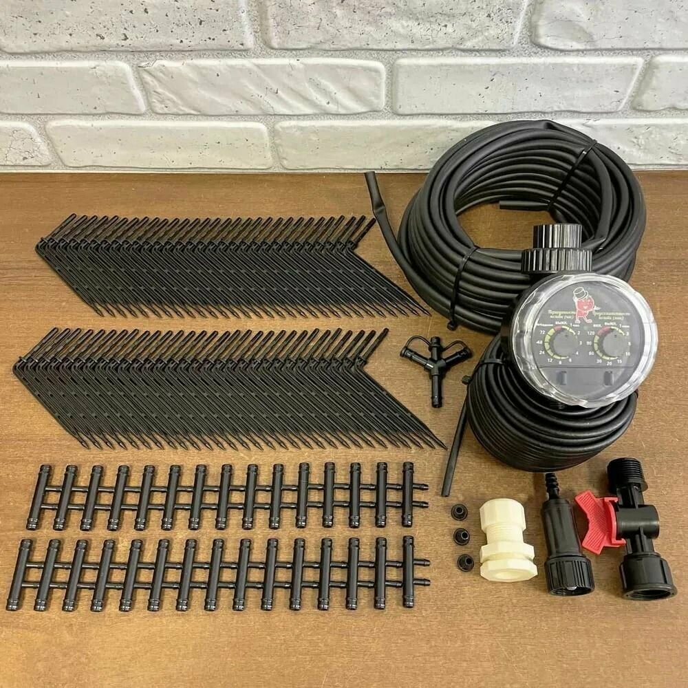 | Комплектация | Электронный шаровый таймер - 1 шт; Врезка для бочки - 1 шт; Шланг магистральный 7/9 мм - 18 м; Шланг для капельниц 4/6 мм - 17 м; Капельницы – 60 штук; Разветвитель – 30 шт.; Переходник - 1 шт; Кран - 1 шт; Тройник с заглушками – 1 шт; Заглушка подающего шланга -3 шт; Инструкция по эксплуатации - 1 шт. |