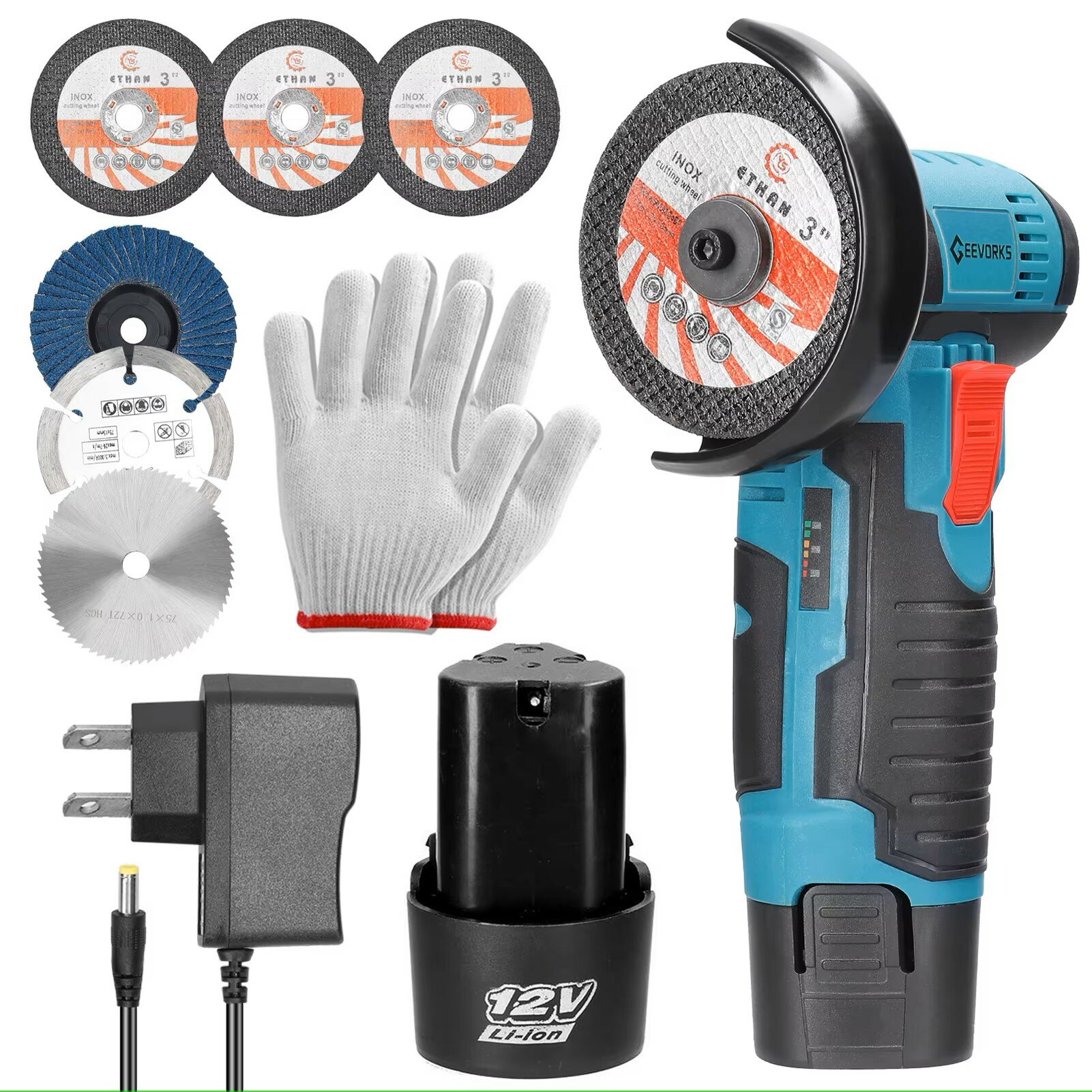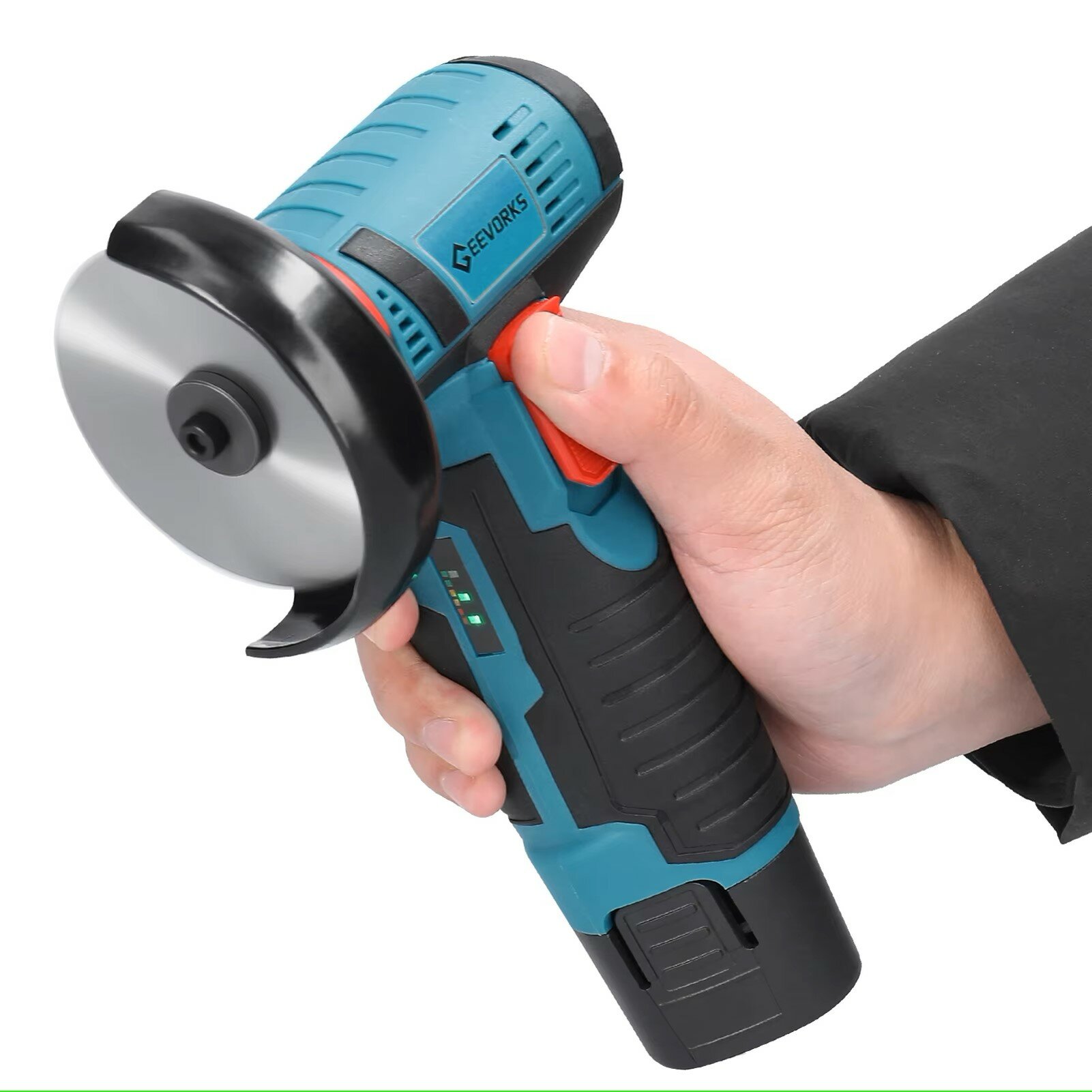 Аккумуляторная мини УШМ (болгарка) Geevorks 12 V 2.0 AH 75 мм 2 аккумулятора, с кейсом интересное: