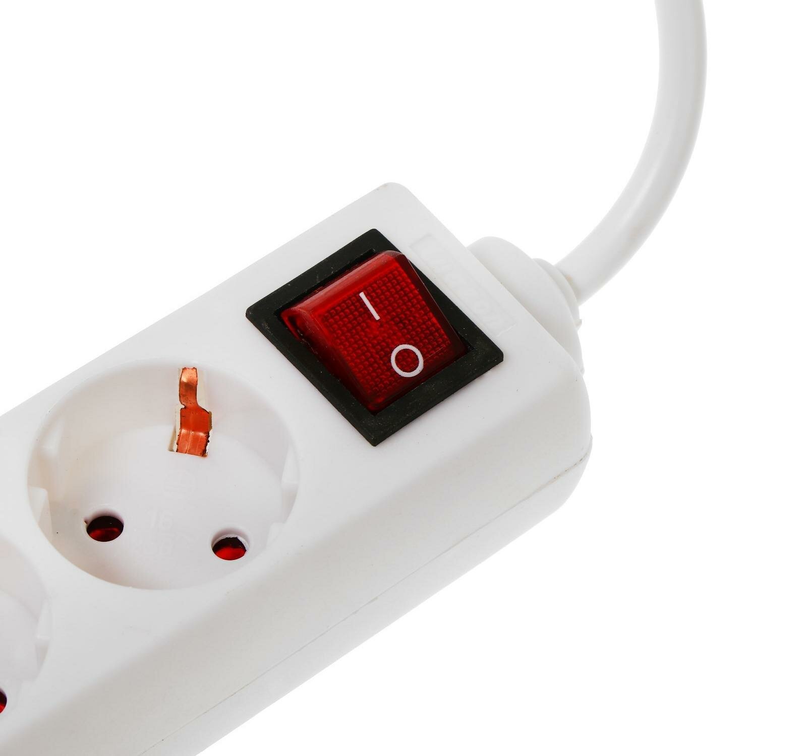 Сетевой фильтр Luazon Lighting, 6 розеток, 5 м, 2200 Вт, 3 х 0.75 мм2, 10 А, 220 В, белый