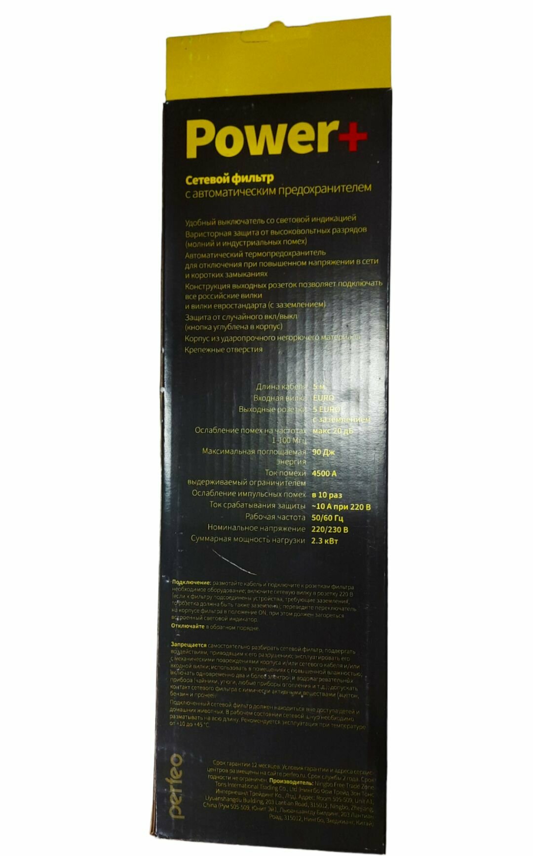 Купить Сетевой фильтр Perfeo "power+", 5,0м, 5 розеток, черный (pf-pp-5/5,0-b) .