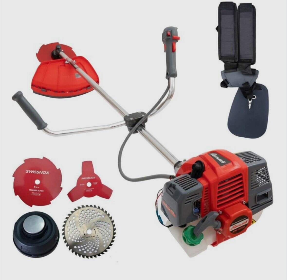 | Подробная комплектация | лопастные ножи Swissnox (3Т, 8Т), диск c победитовыми напайками (40Т), триммерная головка (пластиковая), плечевой ремень с защитой ранцевый, набор инструментов в фирменной сумке, инструкция |