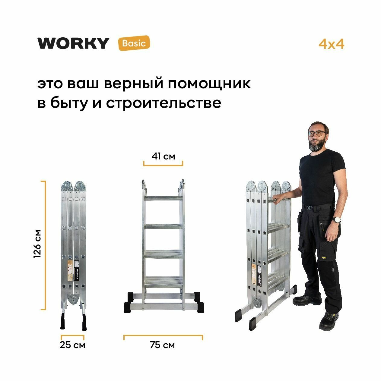 Купить Лестница-стремянка 4х4 трансформер WORKY Basic, высота 4,8м