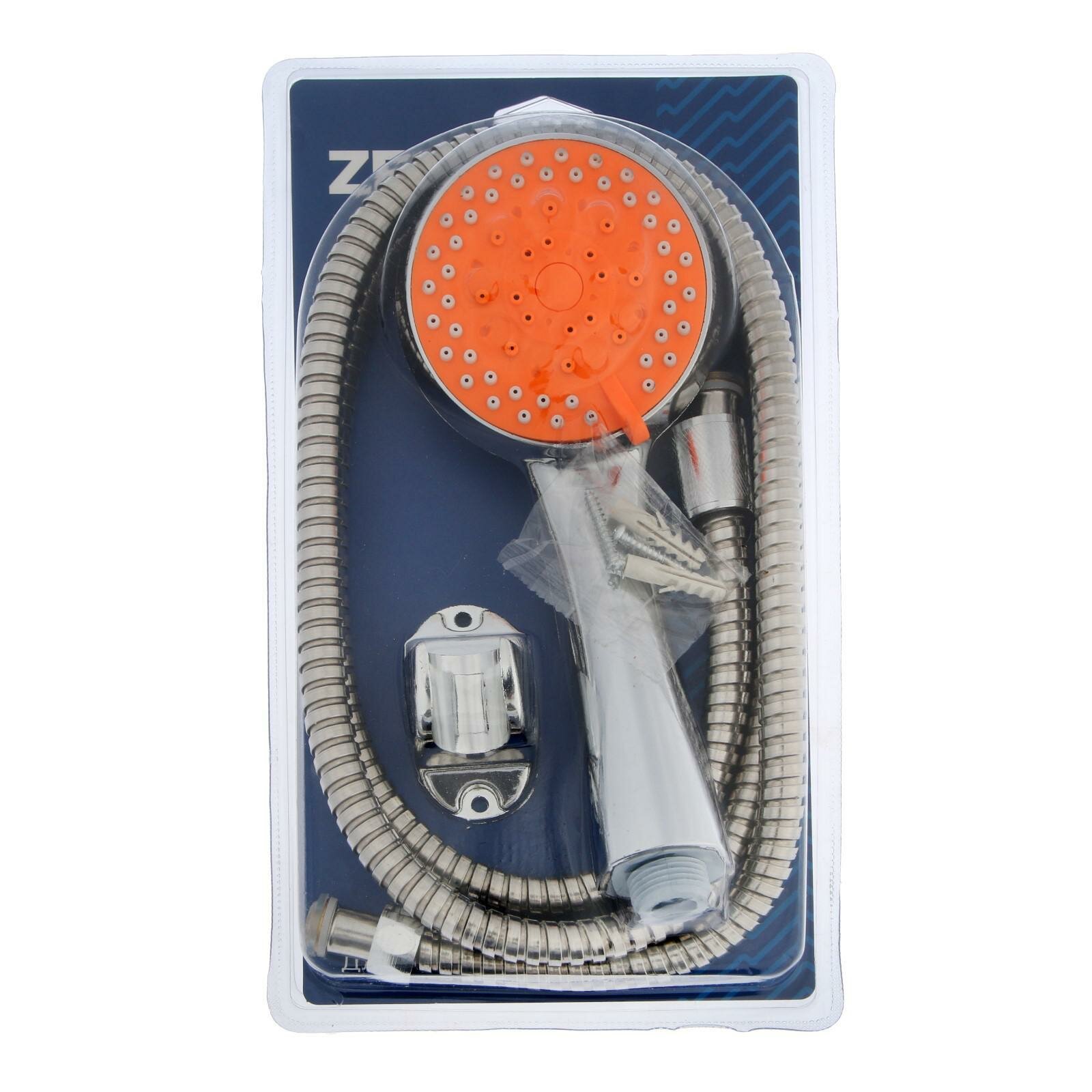 Набор для душа ZEIN Z0905, шланг 150 см, держатель, лейка 5 режимов, оранжевый/хром