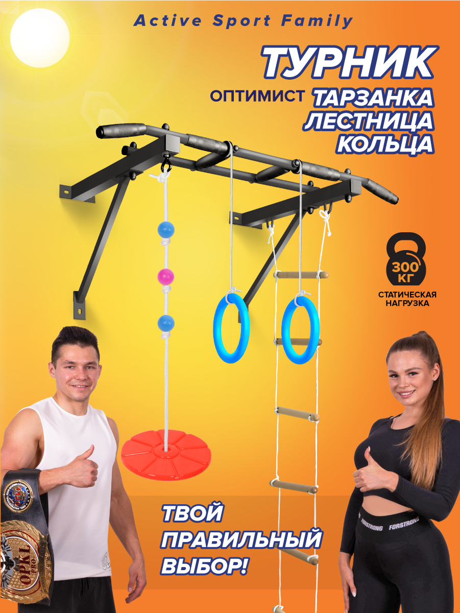Absolute Champion Турник Оптимист (тарзанка, лестница, кольца) черный с черными ручками АЧАЧ10045 интересное: