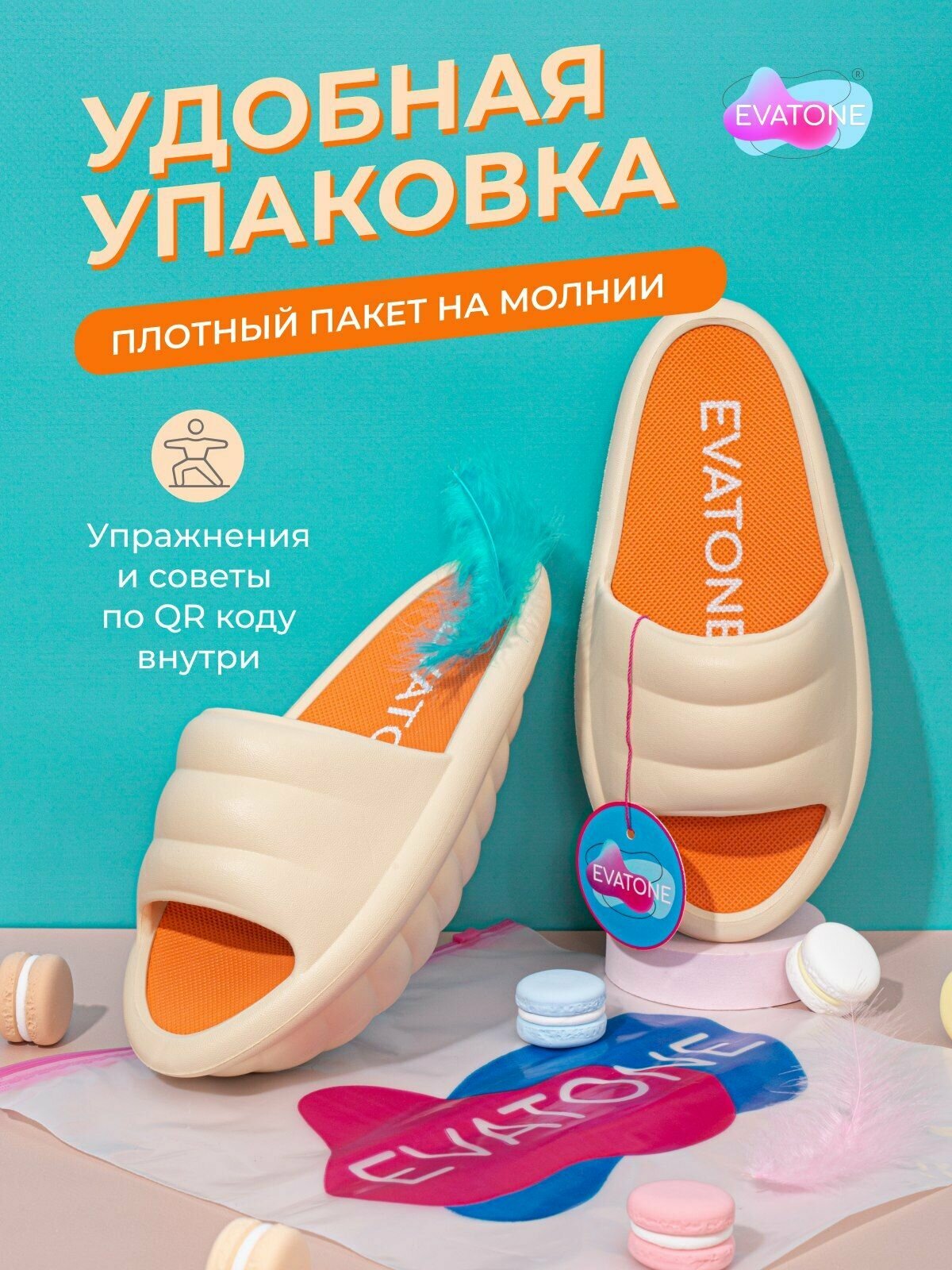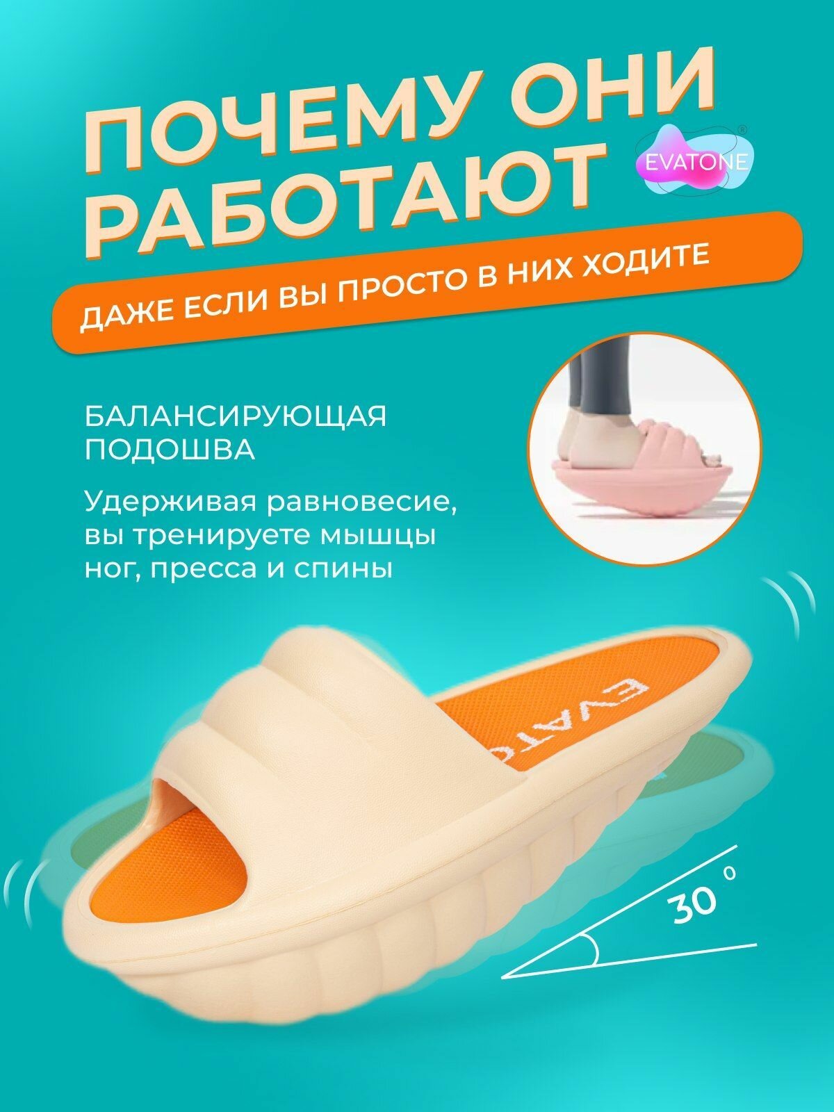 | Дополнительная информация | Универсальный размер 23,5 см стелька. При первой примерке женские тапочки EVATONE не имеют различий на правый и левый, но приобретают их в первой период носки, индивидуально подстраиваясь по форме стопы; подробная комплектация: Пара фитнес-тапочек; инструкция и советы по QR-коду в комплекте; 2 перышка; вид опоры: полусфера; форма доски: овальная; точка опоры: не прикреплена к платформе |