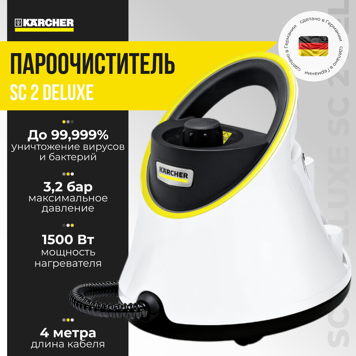 Пароочиститель KARCHER SC 2 Deluxe, желтый/черный [1.513-243.0]
