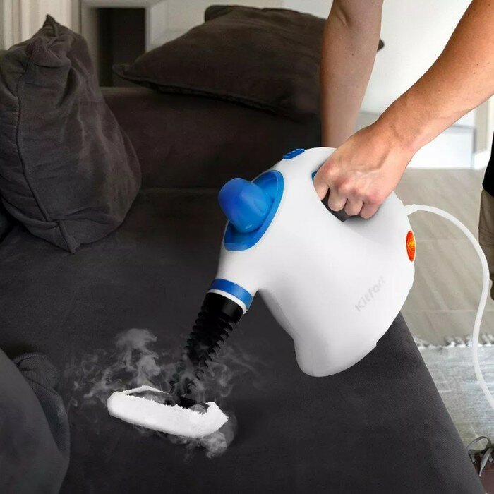 Пароочиститель Kitfort KT-9194-3, 1050 Вт, 0,35 л, 30 г/мин, нагрев 3 мин, бело-синий интересное: