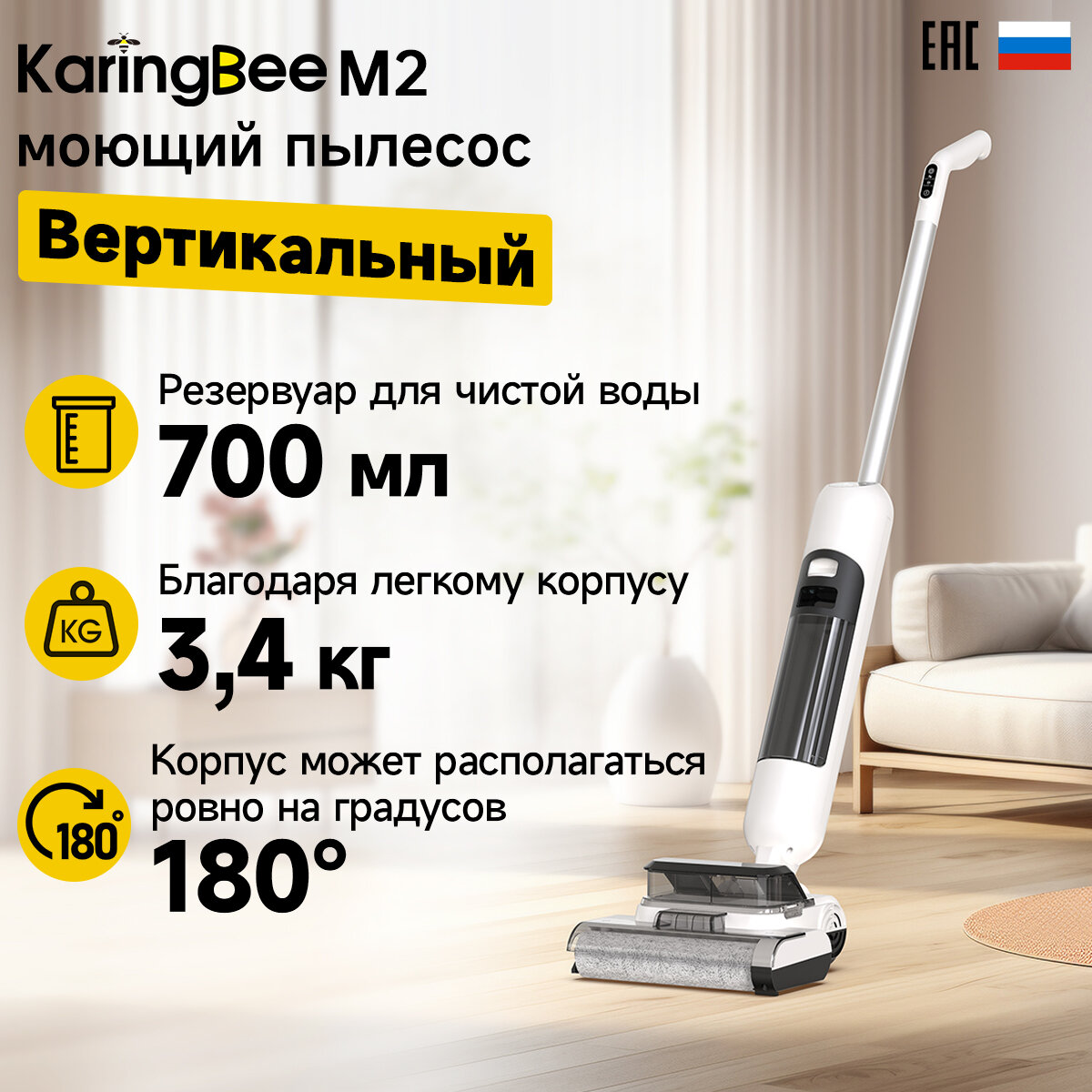 Пылесос для дома KaringBee M2, для сухой и влажной Оснащен функцией самоочистки и сушки насадок