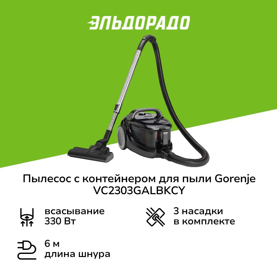 Пылесос Gorenje VC2303GALBKCY (2300/330Вт, контейнер 3,3л, черный)