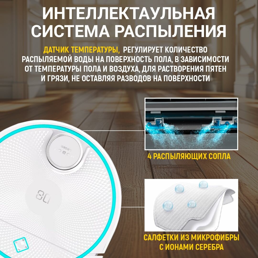 Робот пылесос моющий HOBOT LEGEE-D8, со станцией самоочистки салфеток LuLu
