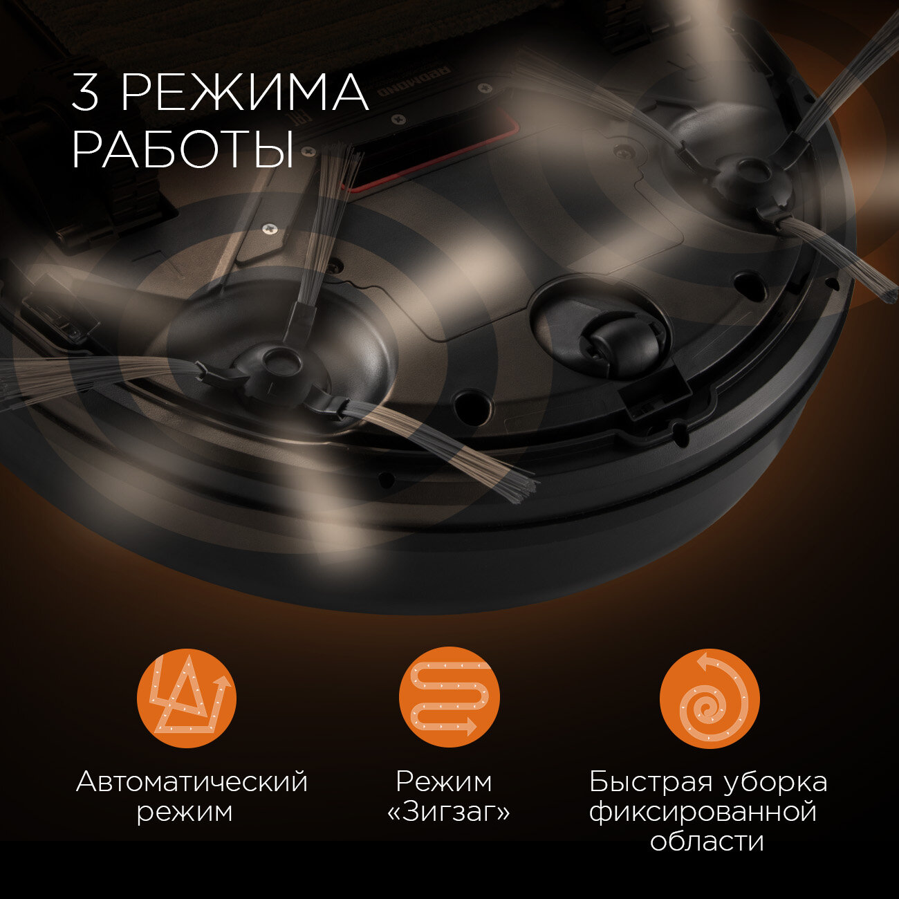 | Режимы работы | движение вдоль стен / движение зигзагом / движение по спирали / местная уборка / уборка по заданному маршруту |