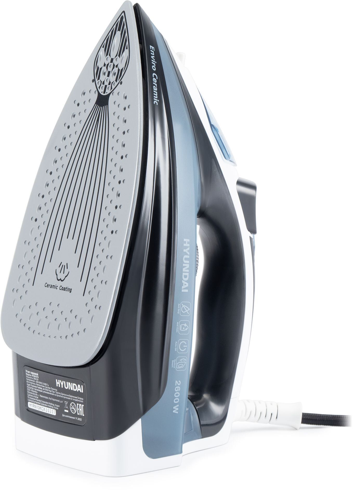 Утюг Hyundai H-SI01573 черный/синий интересное: