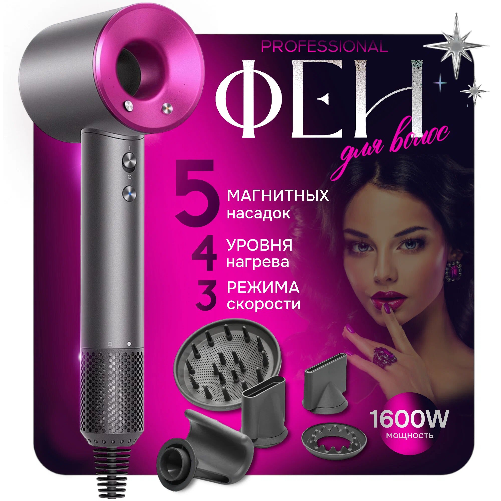 Купить Фен для волос профессиональный/ Супер фен для укладки волос/ Фен стайлер 5 в 1/ Premium/ 5 магнитных насадок