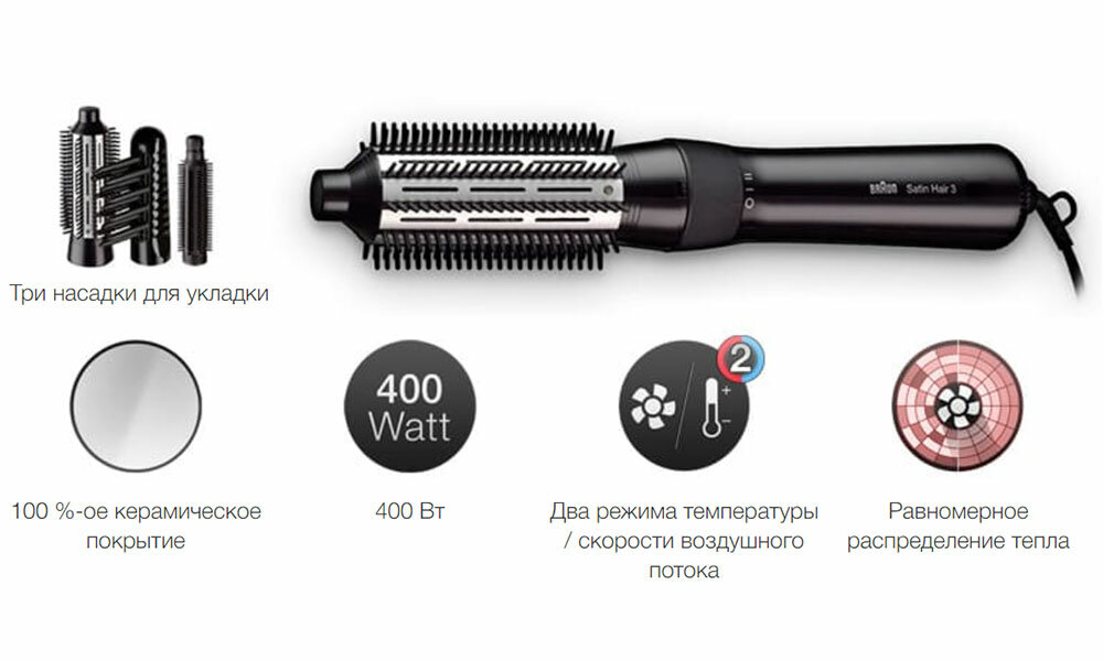 Фен-щетка для укладки Satin Hair 3 AS330 интересное: