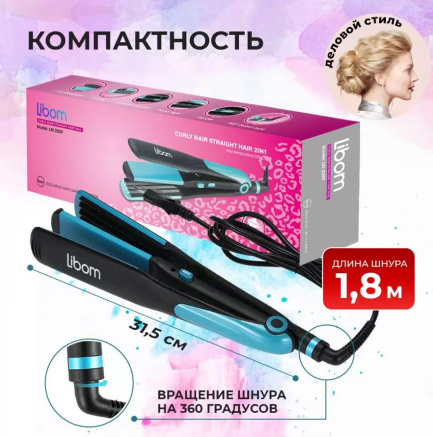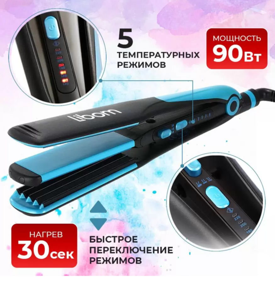 Выпрямитель-гофре, плойка 2 в 1 голубой интересное: