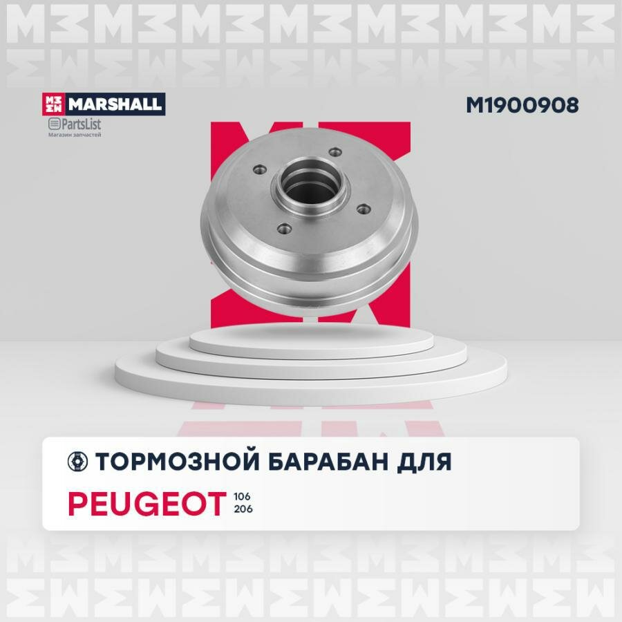 MARSHALL M1900908 Тормозной барабан Peugeot 206 98- задн. интересное: