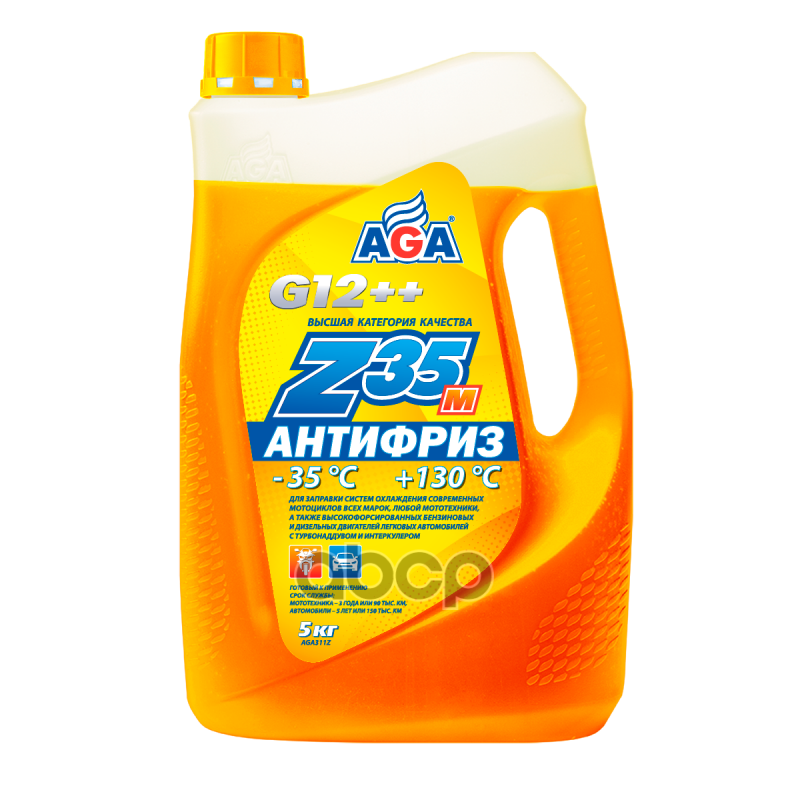 Антифриз AGA оранжевый, 35с, 5кг, g 12++ antifreeze z35m, premi интересное: