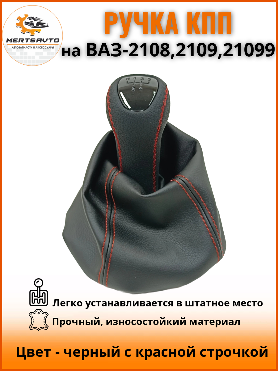 СохранитьРучка КПП с чехлом люкс-черный на ВАЗ-2108, 2109, 21099 (Lada Priora) ручка коробки переключения передач, черный с красной строчкой интересное: