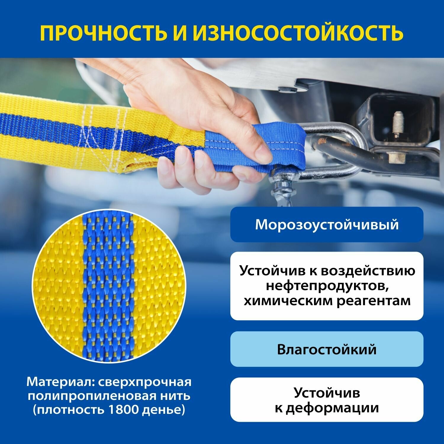 Трос Буксировочный До 7 Тонн, 5 Метров C Шаклами, Сверхпрочная Полипропиленовая Нить, Сумка, Устойчив К Воздействию Влаги И Н...
