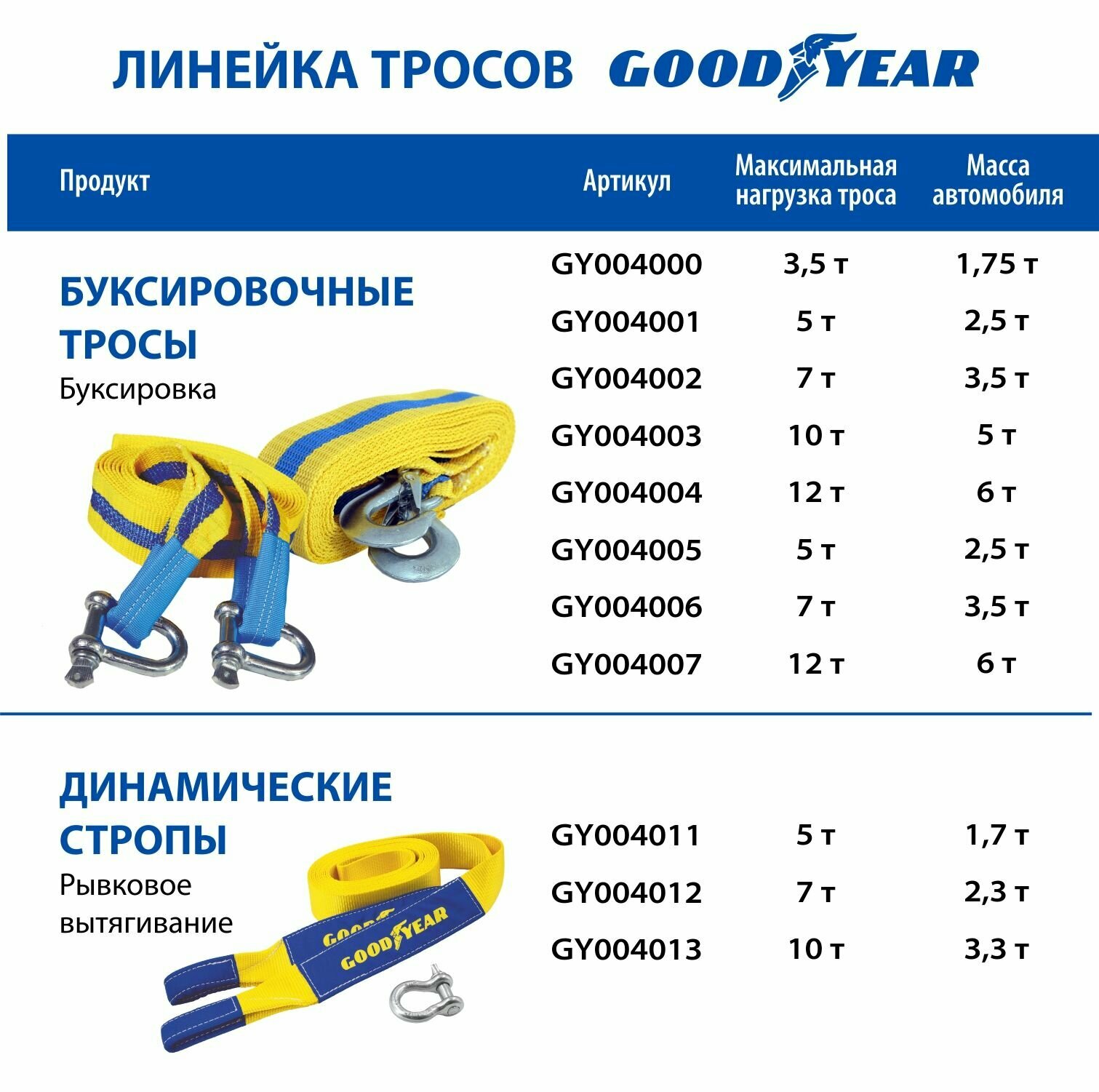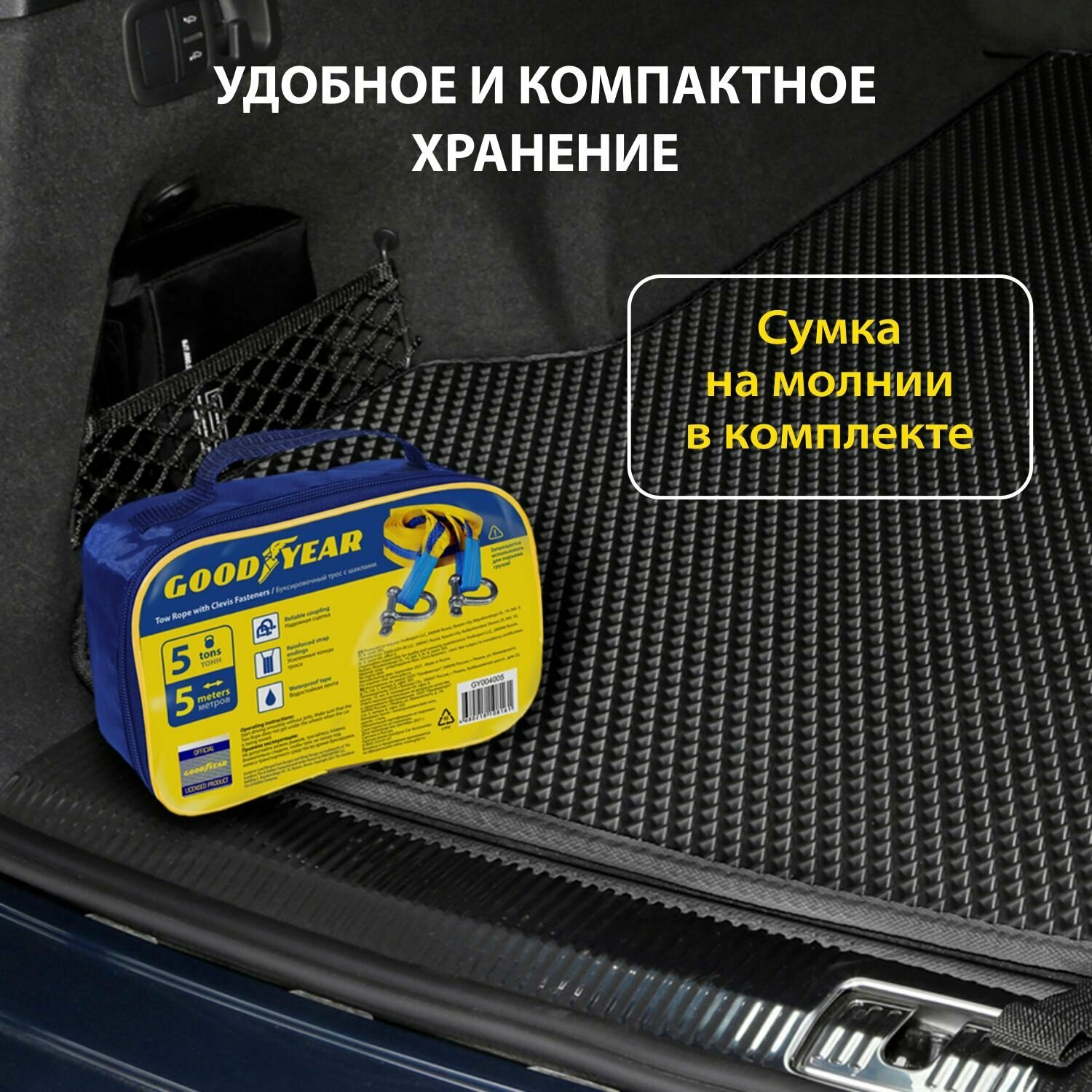 Трос Буксир. Goodyear 12Т 5М С Шаклами GOODYEAR арт. GY004007