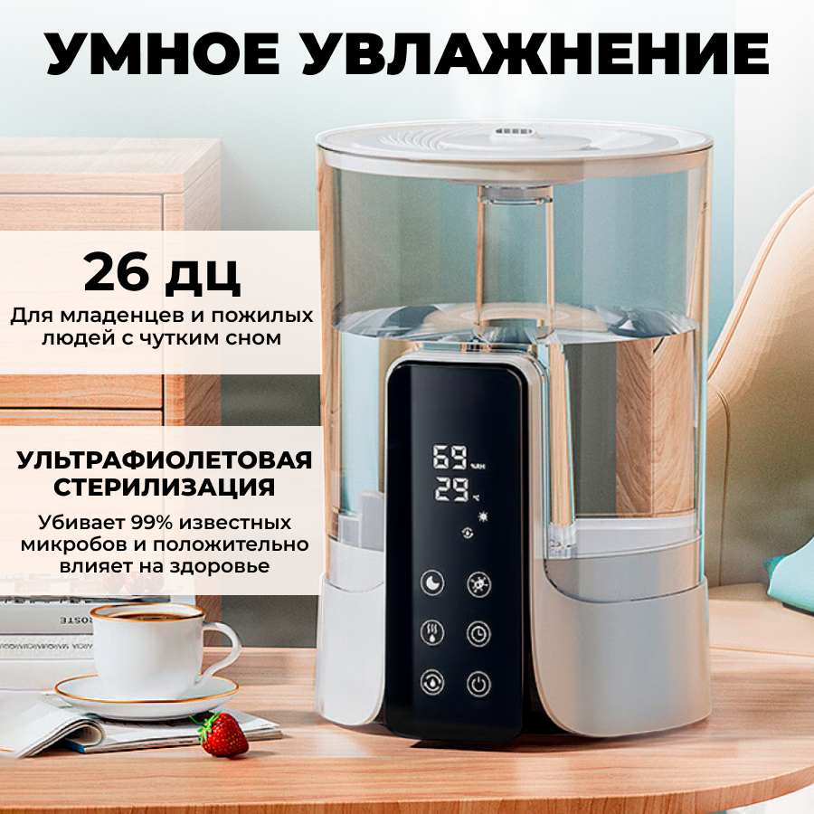 Увлажнитель воздуха для квартиры 6 литров с функцией ароматизации и УФ-лампой, 3 режима работы, пульт ДУ. интересное: