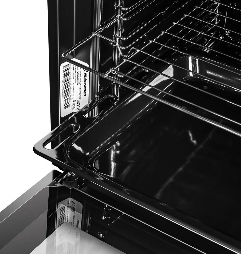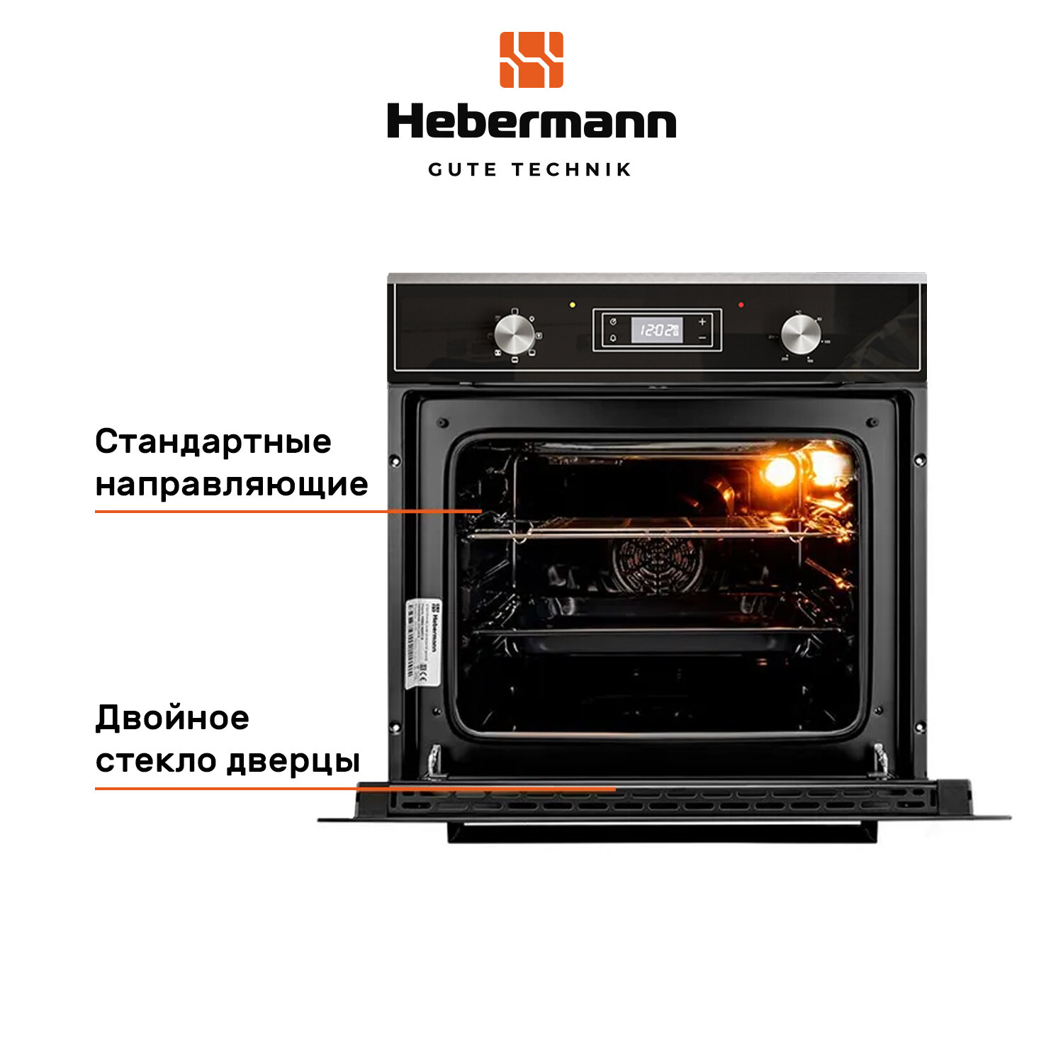 Духовой шкаф HBBO 6007.1 B, черный 6007.1 B, черный, усиленный гриль + конвекция, размораживание, 1 решетка и 1 глубокий противень, двойное стекло у дверцы, 7 режимов работы, размеры шкафа(В*Ш*Г)595*595*530 мм. отделка фасада-стекло