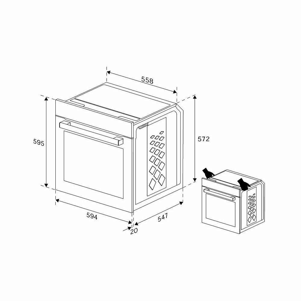 | Дополнительная информация | Плоский противень. Электронный программатор. Конвекция. Размер ниши (высота)- 560. Металлическая решетка. Размер ниши (ширина) - 550. Размер ниши (глубина) - 590. Цифровой дисплей. Таймер. Сетевой кабель с вилкой . . . . . . . . . . . . |