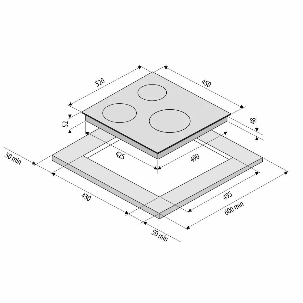 | Общее количество конфорок | 3 |