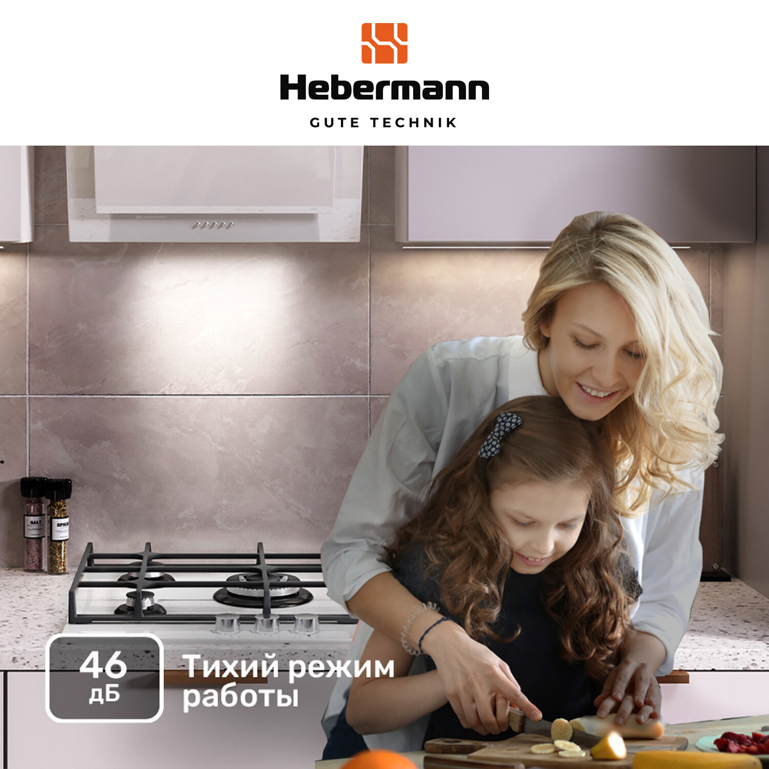 Наклонная кухонная вытяжка Hebermann HBKH 50.4 W, 50см, белая, кнопочное управление, LED лампы, отделка- стекло, производительность 700 м³/ч интересное: