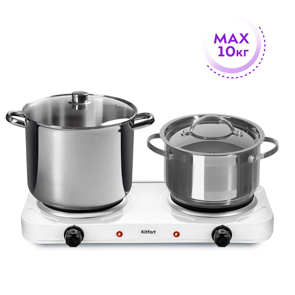 Плитка электрическая Kitfort КТ-173, 1000 Вт, 2 конфорки, белая