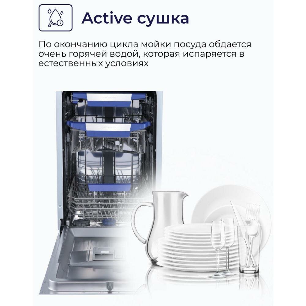 Посудомоечная машина встраиваемая 45 см DELVENTO VGB4601 / 6 программ / 10 комплектов посуды / защита от протечек / Класс A++ / Active сушка / Половинная загрузка / 3 ящика загрузки / Отдельный ящик для столовых приборов / LED дисплей / индикация времени