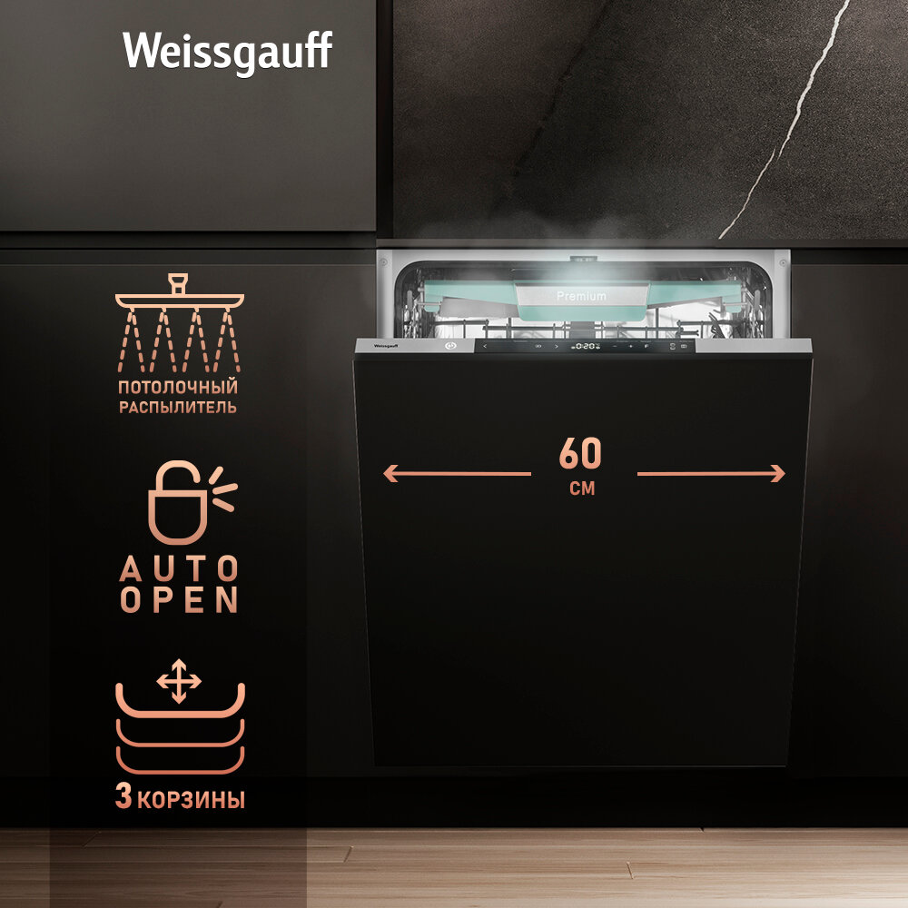 Встраиваемая посудомоечная машина с авто-открыванием, инвертором Weissgauff BDW 6151 Inverter Touch AutoOpen Timer Floor