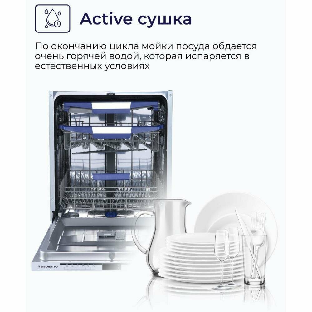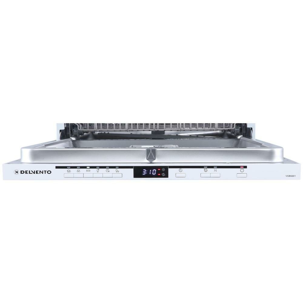 Посудомоечная машина встраиваемая 60 см DELVENTO VGB6601 / Защита от протечки / 6 программ / 14 комплектов посуды / Класс A++ / Active сушка / Половинная загрузка / 3 ящика загрузки / Отдельный ящик для столовых приборов / LED дисплей / индикация времени