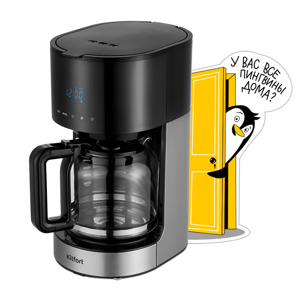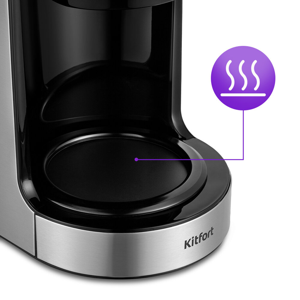 Кофеварка Kitfort KT-7297, капельная, 900 Вт, 1.5 л, серебристо-чёрная интересное: