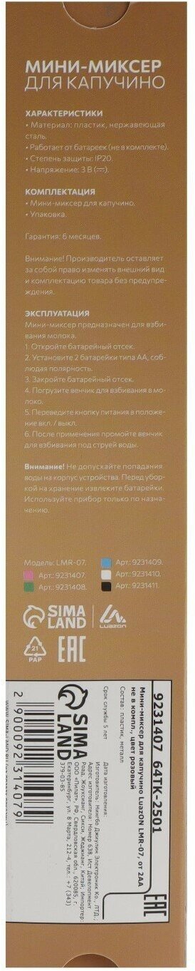 Luazon Home Мини-миксер для капучино Luazon LMR-07, от 2АА не в компл., цвет розовый интересное: