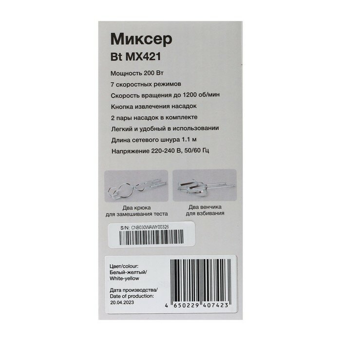 Миксер ручной Blackton Bt MX421 белый/желтый . интересное: