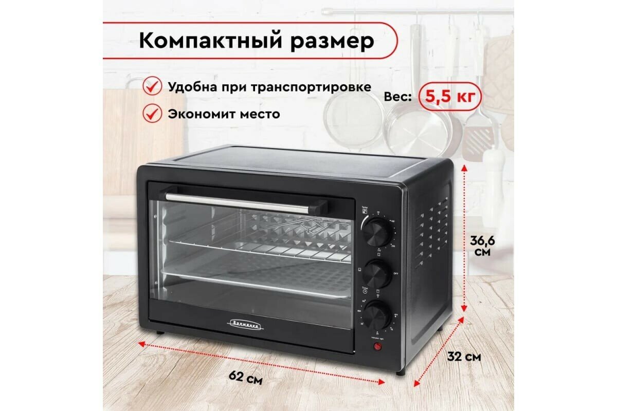 Мини-печь Волжанка Пч-48ч, 1500 Вт, 48 л, 60-230 C, таймер, чёрная Волжанка 10398982 . интересное: