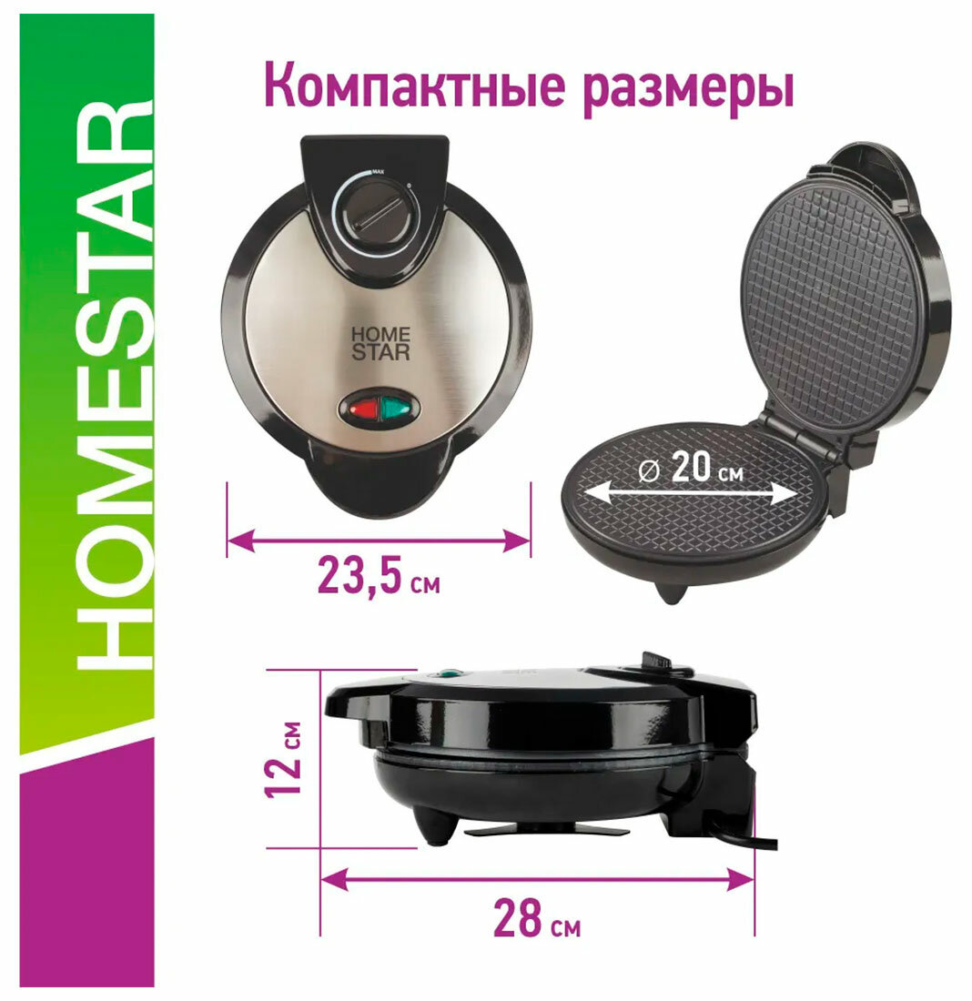 | Дополнительная информация | Вафельница HOMESTAR HS-2028 1200Вт черный |