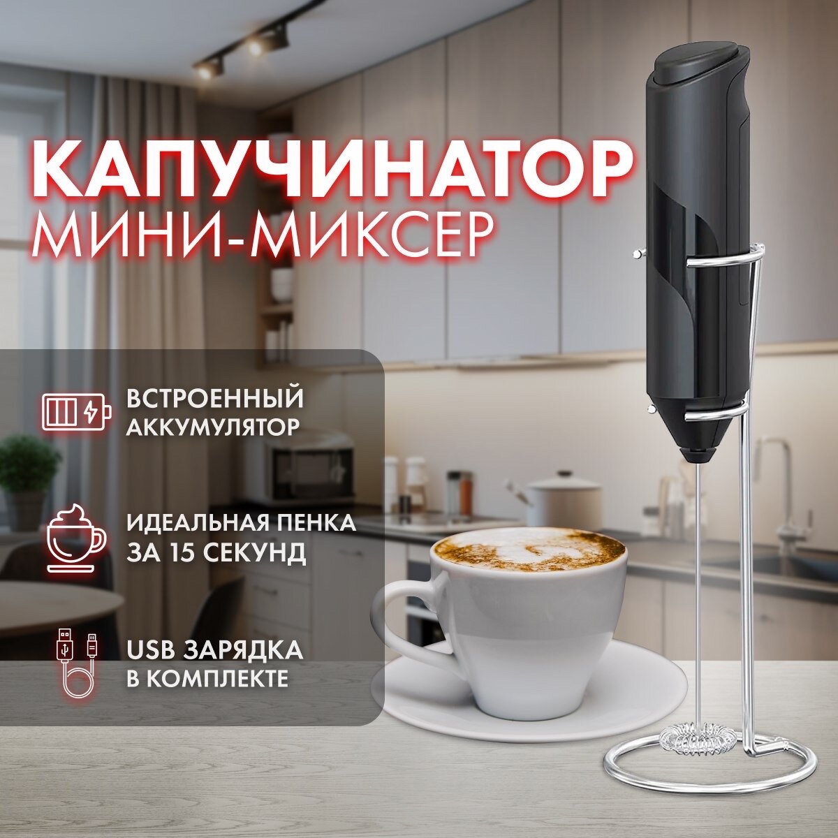 Капучинатор/мини-миксер/электрический/черный